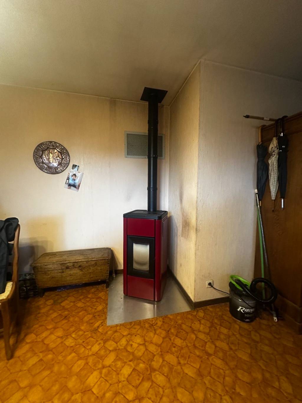 À Vignols, en Corrèze (19), nous sommes intervenus dans le cadre d'une rénovation gloable accompagnée par l'ANAH, afin d'installer une pompe à chaleur HITACHI, remplacer les radiateurs existants et installer un poêle à granulés.